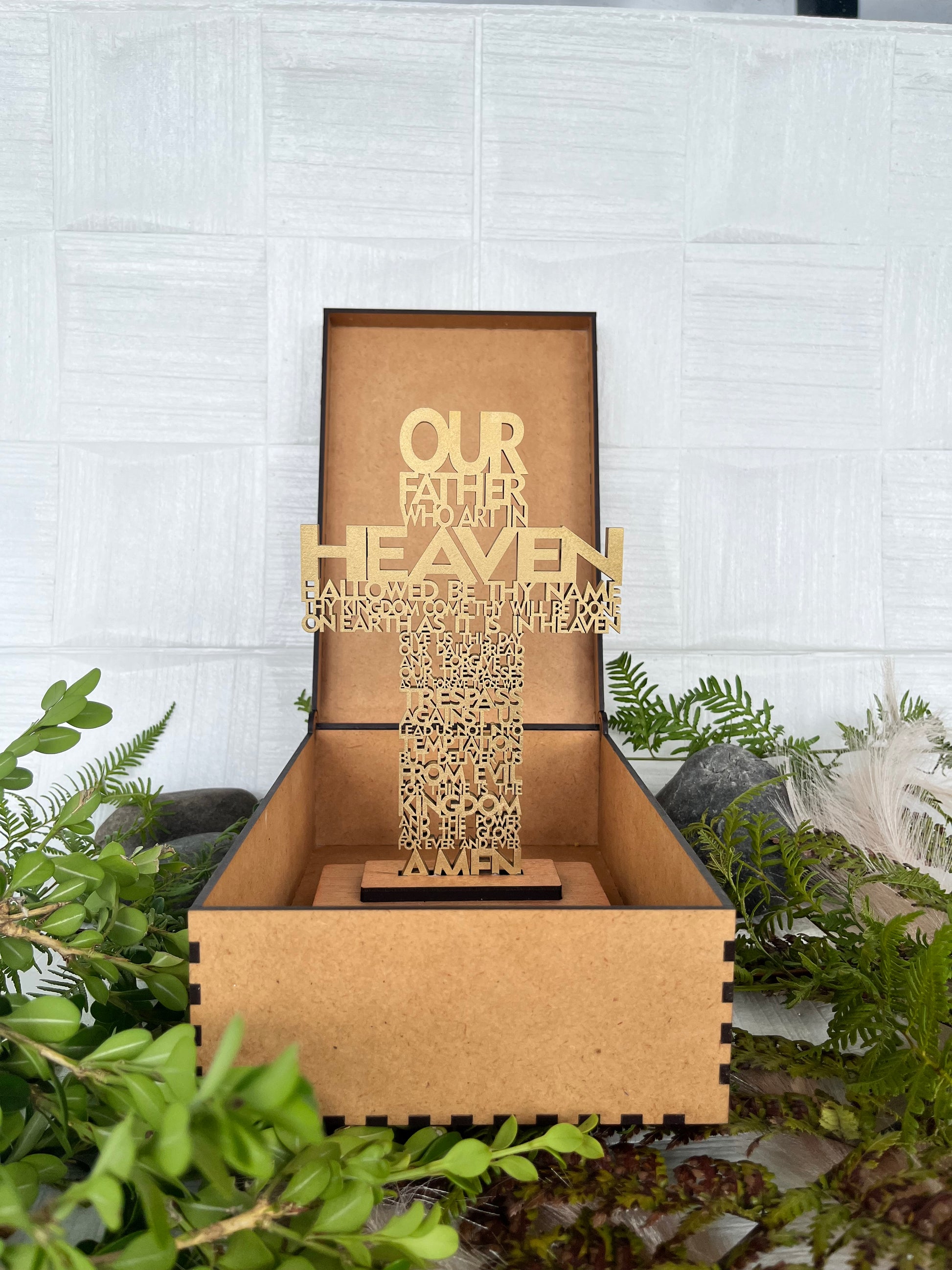 An exquisite expression of faith and artistry, meticulously crafted in the heart of Hawke's Bay. This stunning cross, featuring the timeless words of the Lord's Prayer, is more than a piece of decor; it's a heartfelt statement of belief and a tribute to the bicultural heritage of Aotearoa.